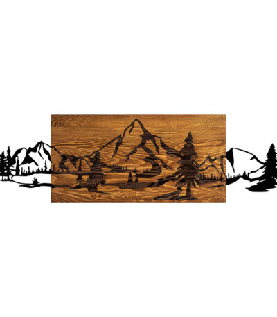 Wall deco Mable pine wood in natural color and black metal 83x3x38cm