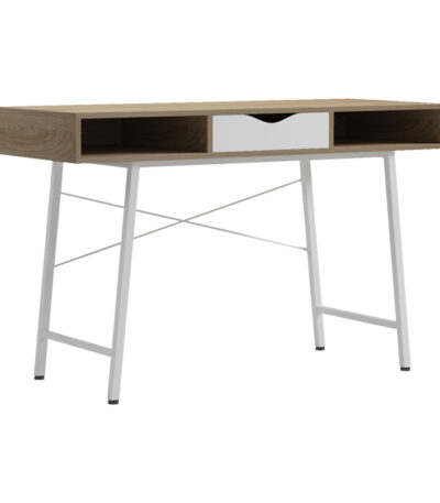 Office desk Komo in sonoma-white color with white metallic legs 120x48x76cm