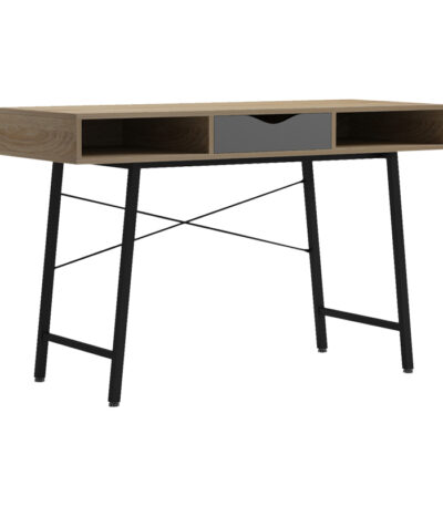 Office desk Komo in sonoma-grey color with black metallic legs 120x48x76cm