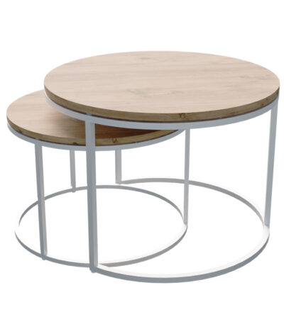 Solme coffee table set of 2 white metal and melamine in natural shade