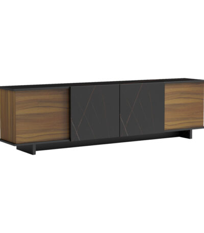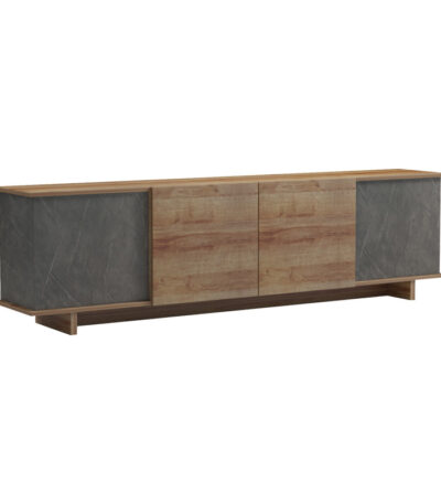 Zafore sideboard in walnut color with black marble 180x33x50cm