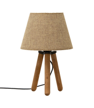 Table lamp PWL-1071 Ε27 beige brown-walnut D22x32cm