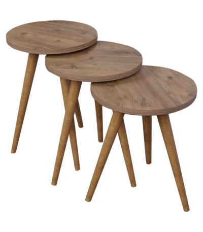 Side tables Perjene set of 3 melamine and wood in a natural shade