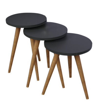 Side tables Perjene set of 3 pieces melamine in anthracite shade and wooden legs