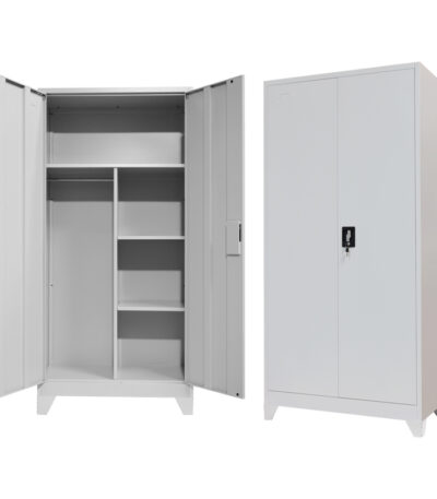 Zogi metal wardrobe with partition in light gray shade 90x45x190cm