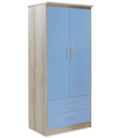 Children’s wardrobe Looney with 2 doors and drawers in castillo-blue colour 81x57x183