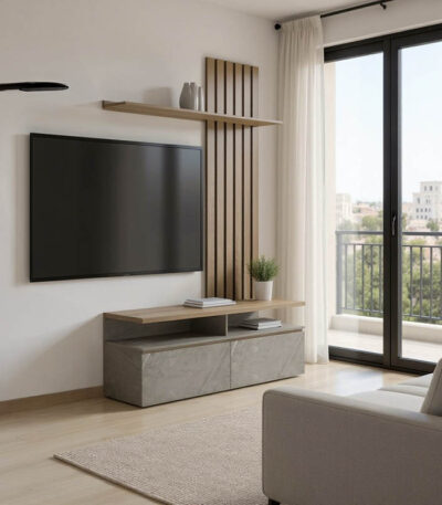 Perlento living room set in beige marble look and sonoma color 140x41x219.5cm