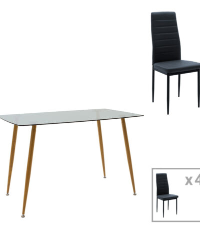 Dining table set of 5 pieces Chloe-Parker glass in dark grey-natural color 120x70x75cm
