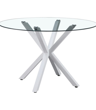 Kitchen table Tavula Glass-Metal with white metal legs D120x75cm