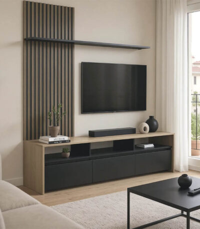 Delfina living room set in sonoma and black color 190x40x199.5cm