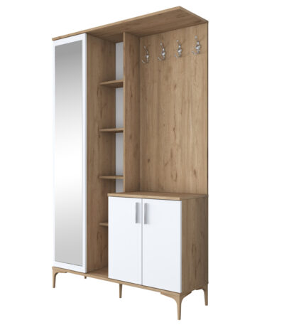 Entrance furniture Zozmo walnut-white melamine 120×37.5×198.6cm