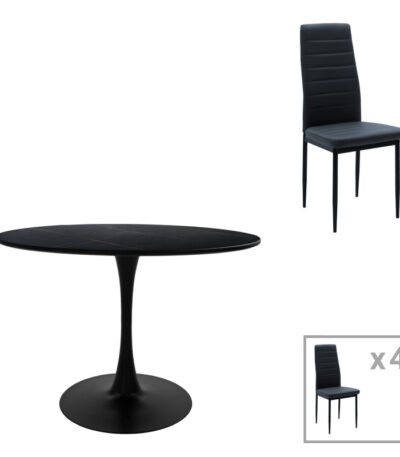 Dining table Balou-Parker set of 5pcs black-anthracite D120x73cm