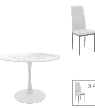 Dining table Balou-Parker set of 5 pcs white D120x73cm