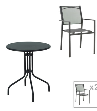 Dining table Vergo-Confidence set of 3 metal in black shade D60x70cm