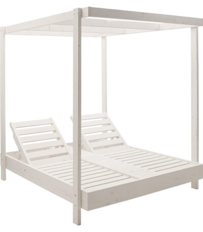 Pakoworld Dual 2-seater deckchair with whitel solid wood canopy