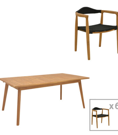 Dining set 7 pcs Ganny-Pino teak wood in natural – black shade 180/240x100x75cm