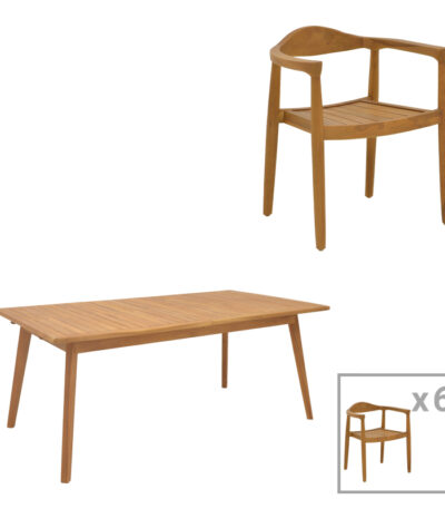 “Dining set 7 pcs Ganny-Pino teak wood in natural shade 180/240x100x75cm” has been added to your cart. View cart