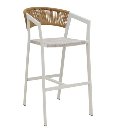 Aluminum bar stool Phoenix stackable white frame-textilene natural rattan 53x58x103cm