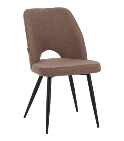 Renish chair bouclé in cappuccino color with black metallic legs61x47x91.5cm