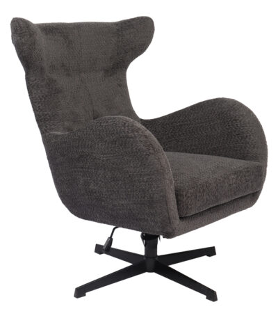 Swivel armchair Zefrina dark grey fabric and base in black color 82x77x99cm