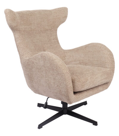 Swivel armchair Zefrina beige fabric and base in black color 82x77x99cm