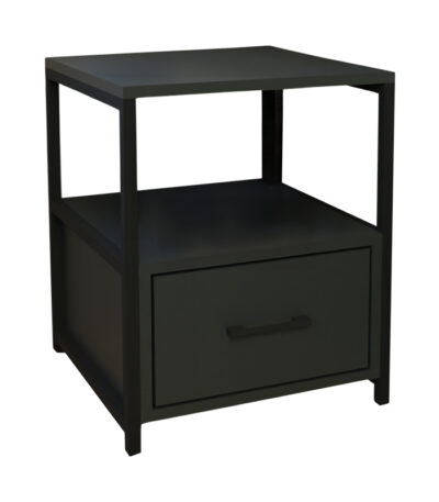 Stani bedside table black metal and melamine in anthracite shade 45x45x57cm