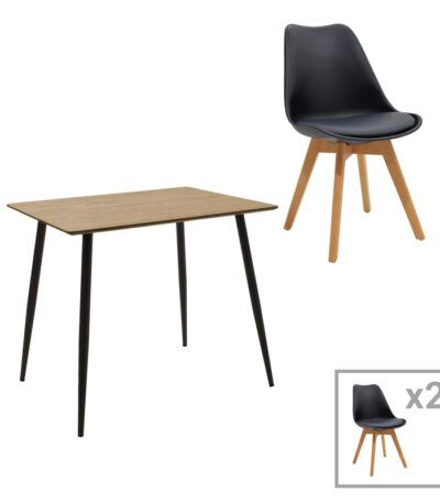 Ezra-Julita dining table set of 3 pp-mdf in black-natural color D80x73cm