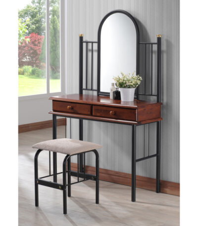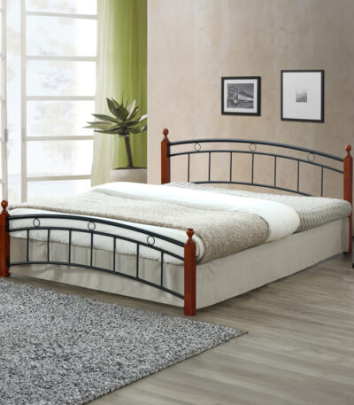 Double bed Clarive walnut color wood-black metal 140x190cm