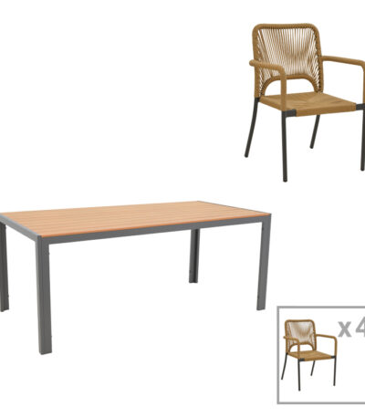 Dining table Nares-Norture set of 5 anthracite aluminum and plywood in natural shade 180x90x72.5cm