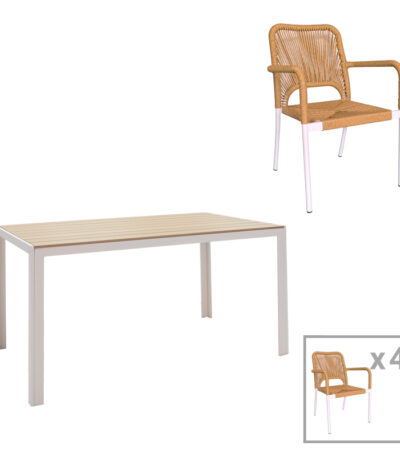 Dining table Nares-Norture A set of 5 white aluminum and plywood in a natural shade 140x80x72.5cm