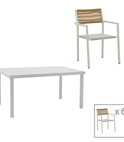 Dining table Kliton – Savor set of 7 aluminum in white shade 150x80x74cm