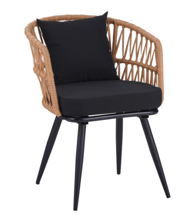 Naoki Pakoworld Armchair pe rattan -metal in Natural Finish with Black Legs/Cushion 62x60x80cm