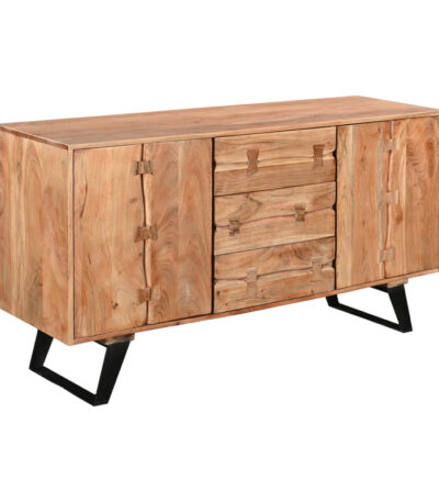 Buffet Leontina solid acacia wood in natural color and black metal leg 150x45x86cm