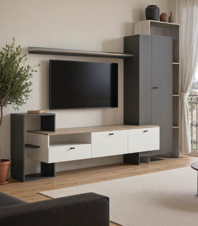 Ferefia living room set in sonoma and white and dark grey color 240×45.5×189.5cm