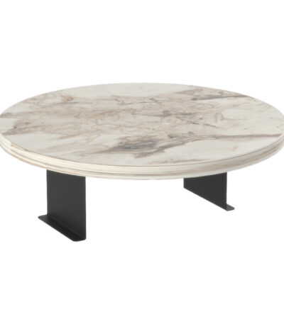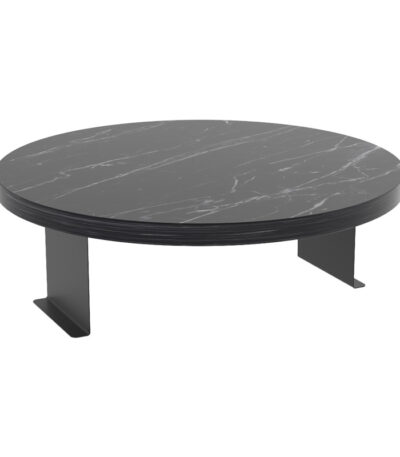 Linea side table in black marble finish with black metal legs D35.5x5cm