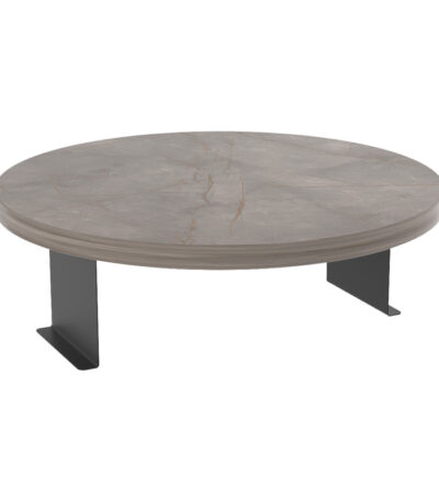 Linea side table in grey marble look with black metal legs D35.5x5cm