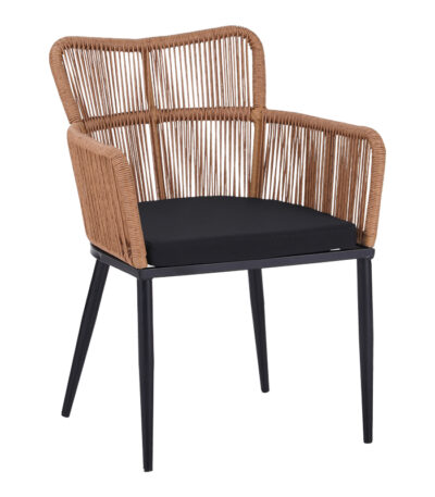 Naoki Pakoworld Armchair pe rattan -metal in Natural Finish with Black Legs/Cushion 59×62.5x78cm