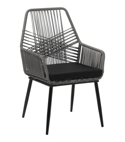 Tanish pe rattan armchair in gray shade with black metal legs 58×58.5x87cm
