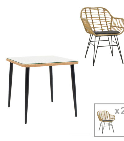 Naoki V dining table set of 3 rattan pe in natural shade and black metal 80x80x78cm
