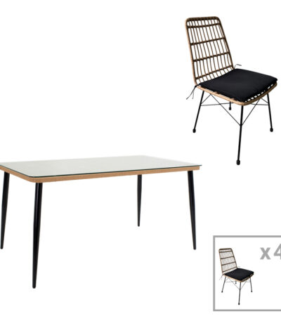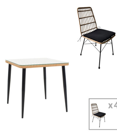 Naoki U dining table set of 5 rattan pe in natural shade and black metal 80x80x78cm