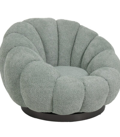 Nester swivel armchair boucle fabric in light green color 98x97x69cm