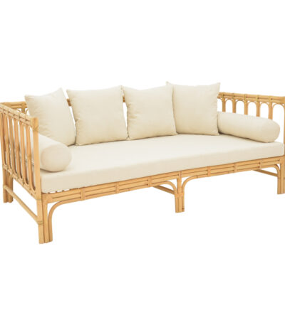 Sofa Alessa natural rattan-white fabric with cushions 200x100x76cm