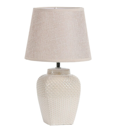 Table lamp Guidance Inart E27 white glass-white fabric lampshade D25x41cm
