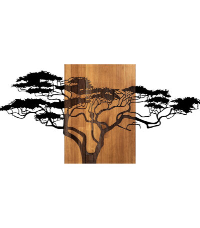 Wall deco Deera pine wood in natural color and black metal 33x3x58cm