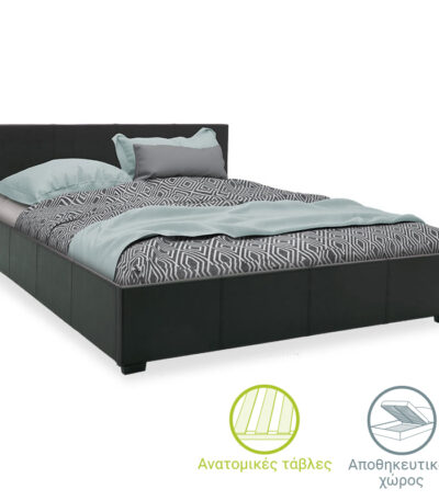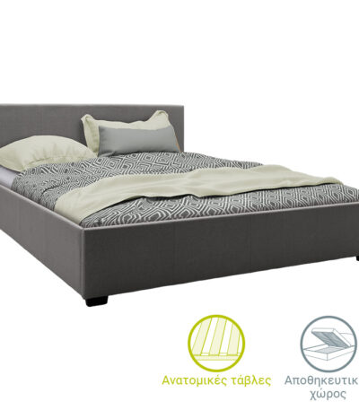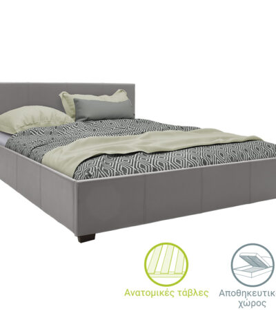 Double bed Norse PU with storage space in grey matte 160x200cm