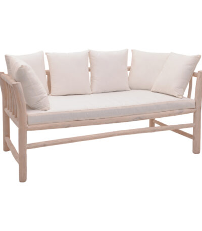 2-seater sofa Dranjere natural color teak wood with beige fabric 167x80x71cm