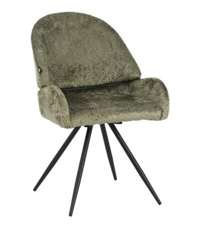 Morea rotating chair bouclé in olive green color with black metallic legs 55×63.5×89.5cm