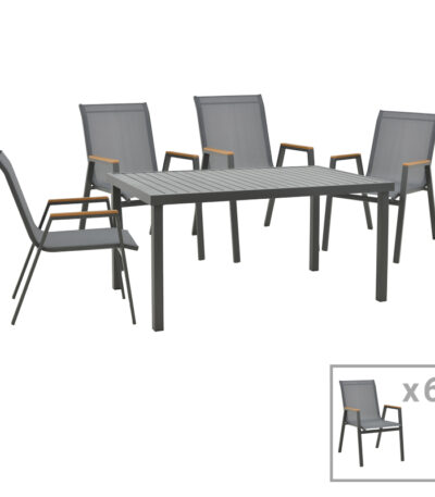 Dinning set Azelie-Kliton set of 7 anthracite fabric-anthracite aluminum 150x80x74cm