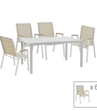 Dinning set Azelie-Kliton ΙΙ set of 7 grey fabric-white aluminum 150x80x74cm