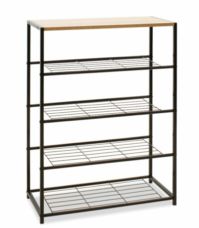 Shoe rack Ramon 6 pairs modern oak color with black metal frame 63x30x43cm